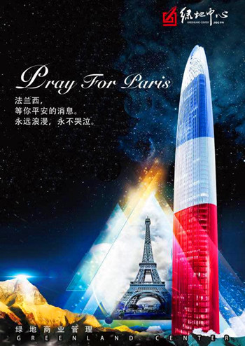 今晚,濟南綠地高媒”泉城之根“綠地中(zhōng)心作(zuò)為(wèi)泉城地标也将将亮起“法蘭西之色”,用(yòng)泉城人民(mín)的大愛為(wèi)浪漫之都巴黎祈福,願她永不哭泣,永遠(yuǎn)浪漫,願世界永遠(yuǎn)和平!